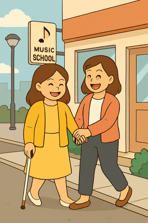 視覚障害のある方が、安心して外出できるようにスタッフが同行し、移動や生活動作をサポートします。利用される方のペースに合わせ、外出先での不安を少しでも軽くできるよう、丁寧に寄り添った支援を行います。