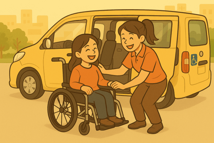 車いすでもお迎えに行きます。